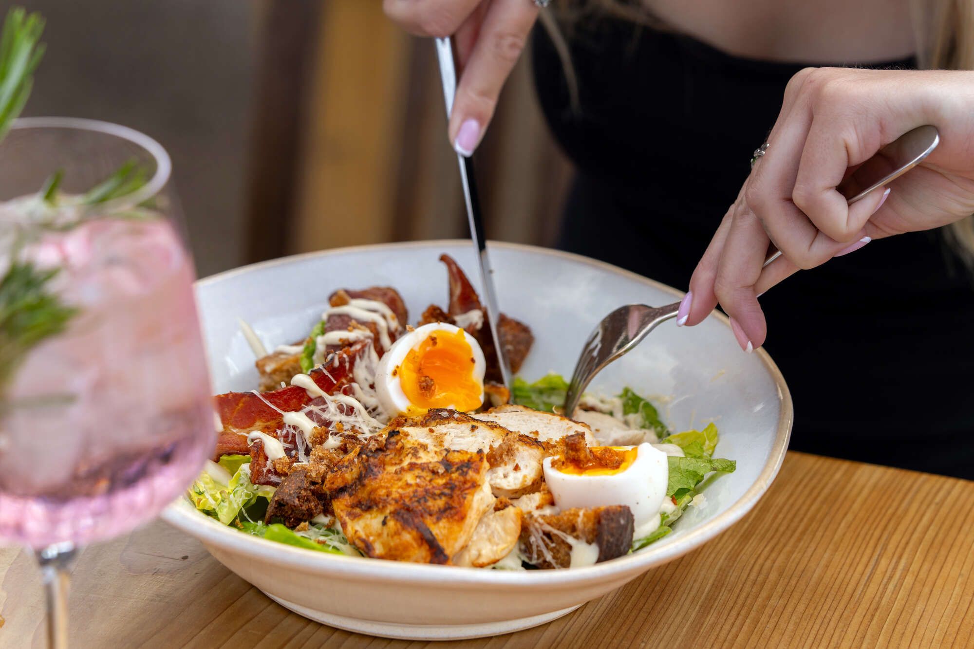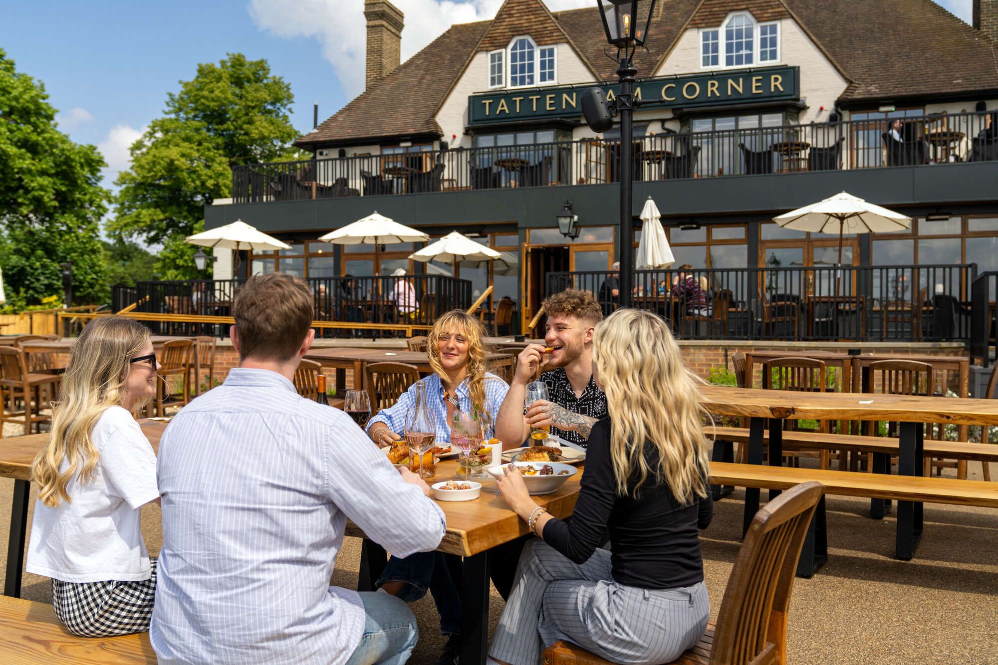 At the bar, enjoy a handpicked selection of wines, real ales, and craft beers, perfect for pairing with bright days and stunning Epsom sunsets. Discover the true taste of a Great British pub.